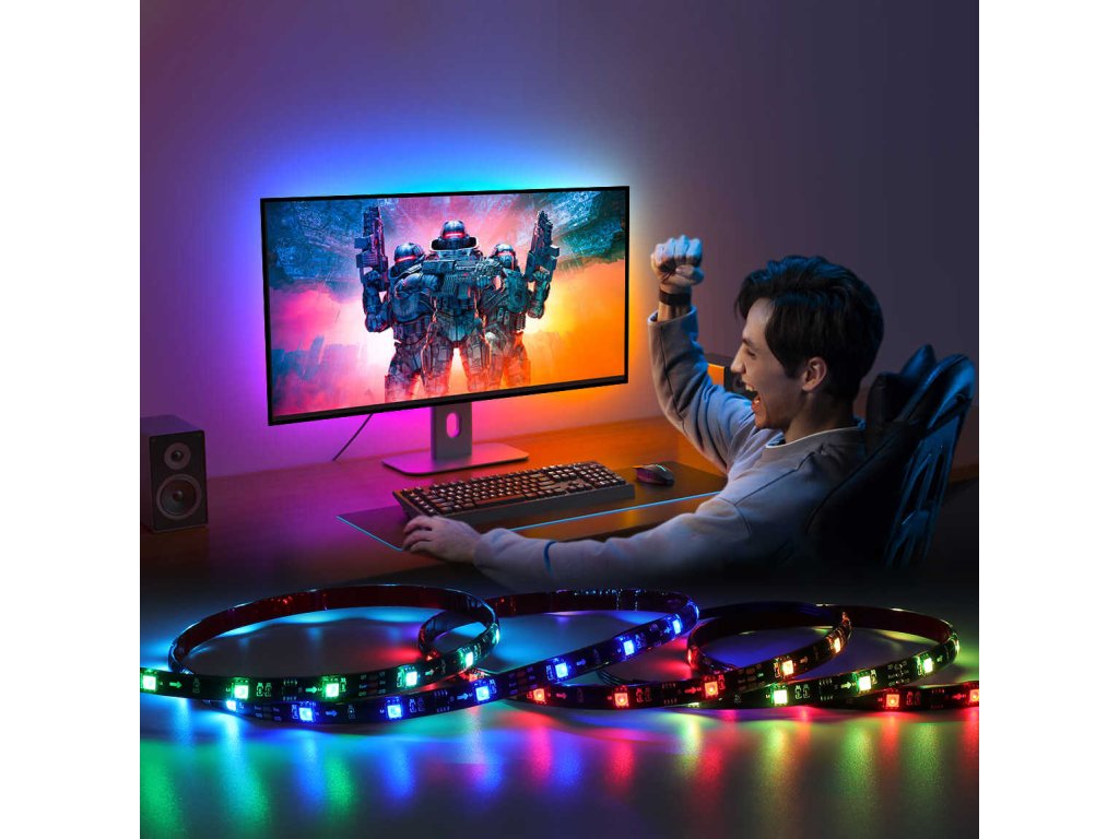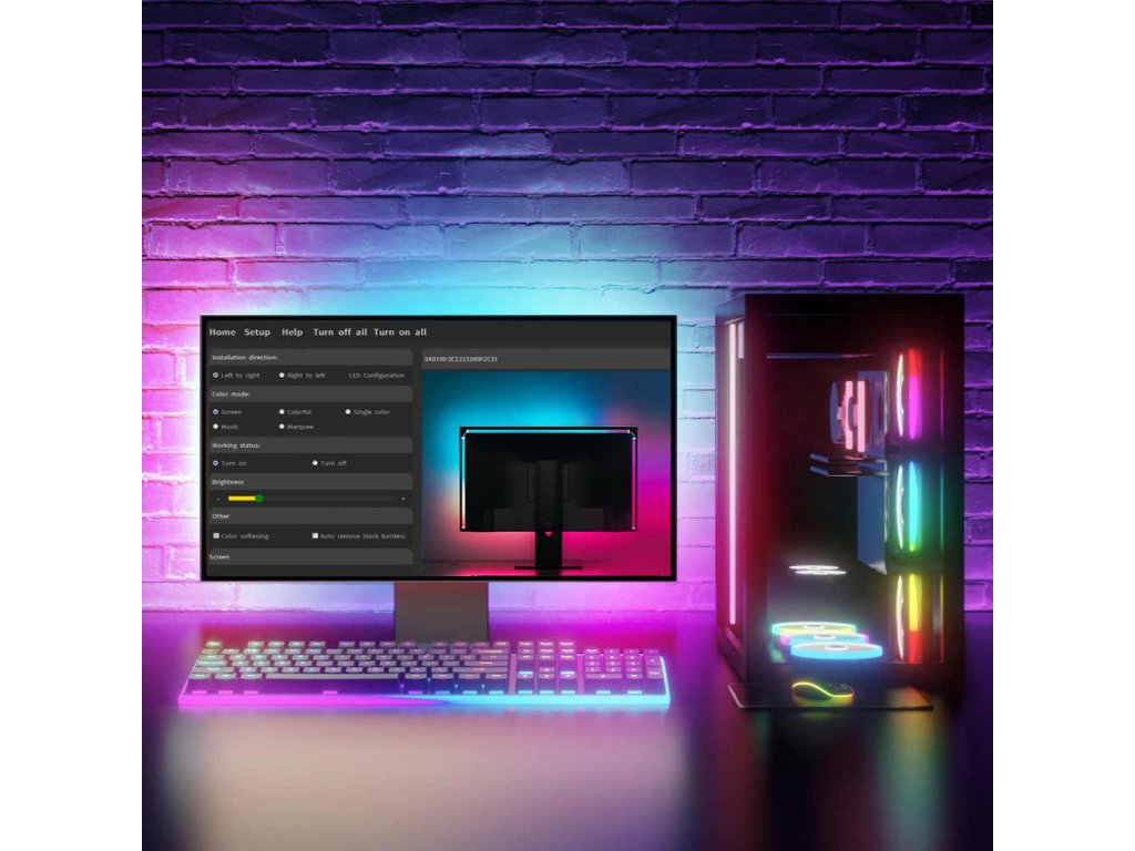 Adresovatelný LED pásek RGBIC je určený pro podsvícení zadní strany PC monitoru a zajišťuje příjemný barevný světelný efekt při sledování filmů, hraní her nebo práci. Konstrukce pásku je přizpůsobena snadné instalaci – tři segmenty různých délek (30cm - 50cm - 30cm), vzájemně propojených vodičem, umožňují ideální rozmístění po obvodu monitoru, zatímco USB napájení zajišťuje jednoduché uvedení do provozu bez potřeby dalších adaptérů. Kombinace RGBIC technologie, černého PCB a ochranného zalití (IP65) tvoří efektivní a estetické řešení osvětlení pro moderní pracovní nebo herní prostředí.