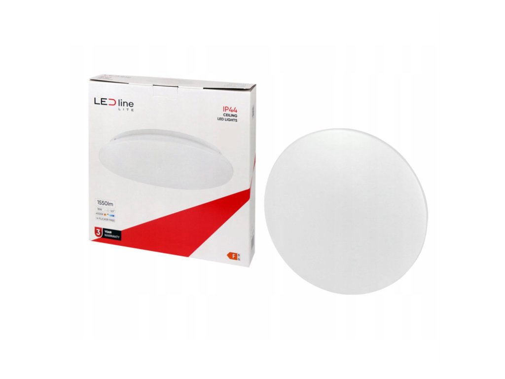 Kulaté stropní svítidlo LEDLINE Plafon s mikrovlnným čidlem pohybu patří mezi univerzální a spolehlivá svítidla pro vnitřní i venkovní použití. Díky krytí IP44 je vhodné jak do chodeb, schodišť a technických místností, tak i pro kryté venkovní prostory u vchodových dveří, bran nebo pod přístřešky. Spojuje moderní design, vysokou světelnou účinnost a odolnost vůči vlhkosti i prachu. Model s výkonem 18 W nabízí světelný tok 1550 lm a neutrální bílou barvu světla 4000 K, která zaručuje přirozené podání barev (CRI > 80) a rovnoměrné rozptýlení světla po celém prostoru. Kulatý tvar svítidla o průměru Ø 350 mm umožňuje rovnoměrné osvětlení bez stínů a oslnění.